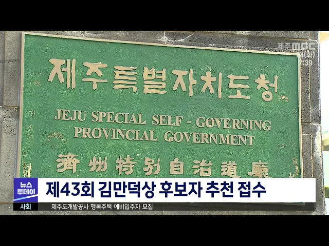 제주도는 오는 8월까지 제43회 김만덕상 수상 후보자 추천을 받습니다. 추천 대상은 이웃사랑을 실천한 봉사부문과 이윤을 사회에 환원한 경제인 부문이며, 수상자는 오는 10월 최종 선정됩니다. 김만덕상은 조선시대 나눔을 실천한 의인 김만덕의 정신을 계승하기 위해 1980년부터 시행되고 있습니다.