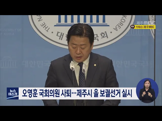 오영훈 국회의원 사퇴..제주시 을 보궐선거 실시