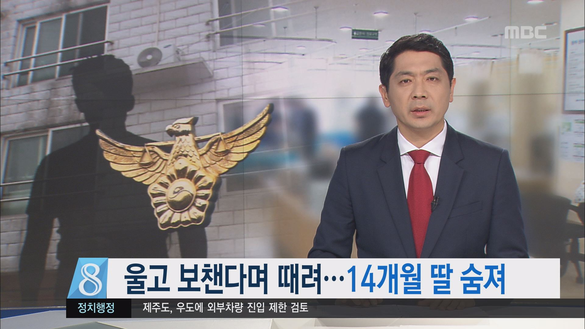 ◀ANC▶ 14개월 된 어린 딸을 폭행해 숨지게 한 인면수심의 20대 아버지가 경찰에 긴급 체포됐습니다. 아이가 밤에 잠을 자지않고 울면서 보챘다는 게 폭행 이유였습니다. 김항섭 기자입니다. ◀END▶ ◀VCR▶ 제주시내 한 4층짜리 빌라. 오늘 새벽 4시쯤 이 곳에서 14개월 된 여자아기가 숨을 안 쉰다는 신고가 119에 ...