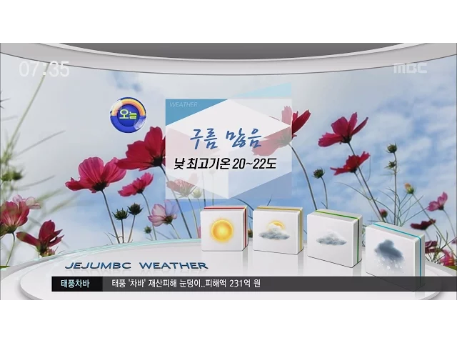 제주는 오늘 고기압의 가장자리에 들어 구름 많은 가운데 낮 최고기온은 20도에서 22도로 어제와 비슷하겠습니다. 북부지역은 북동풍이 불면서 낮에도 기온이 17도에서 20도에 머물며 다소 쌀쌀하겠습니다. 서부지역도 낮 기온이 지금보다 2,3도 올라 어제와 비슷하겠습니다. 남부지역, 구름 많은 가운데 낮기온 21도에서 2...