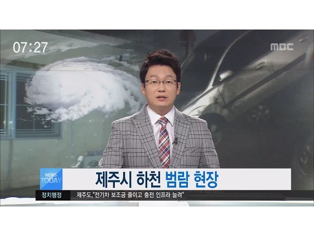 ◀ANC▶ 이번 태풍은 하천이 범람한 제주시에서 큰 피해가 발생했는데요. 지난 태풍 나리처럼 산지천과 한천이 범람하면서 차량 수십대가 휩쓸려 가고 한 때 주민 대피령까지 내렸다고 합니다. 현장에 나가 있는 취재 기자 연결해 상황 알아보겠습니다. 김찬년 기자! 그곳 상황 어떤 가요? ◀END▶ 네, 저는 한천 복개구...