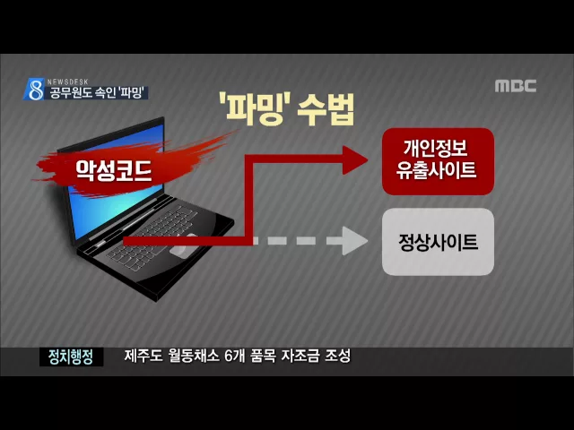 ◀ANC▶ 컴퓨터에 악성 코드를 심어 개인정보를 빼내는 수법을 파밍이라고 하는데요. 수법이 워낙 정교해지다 보니 공무원까지 수 천 만 원의 피해를 당했습니다. 김찬년 기자입니다. ◀END▶ ◀VCR▶ 국내 한 은행의 인터넷 사이트. 제주지역 국가기관에 근무하는 공무원 43살 정 모 씨는 평소처럼 인터넷 뱅킹을 위해 ...