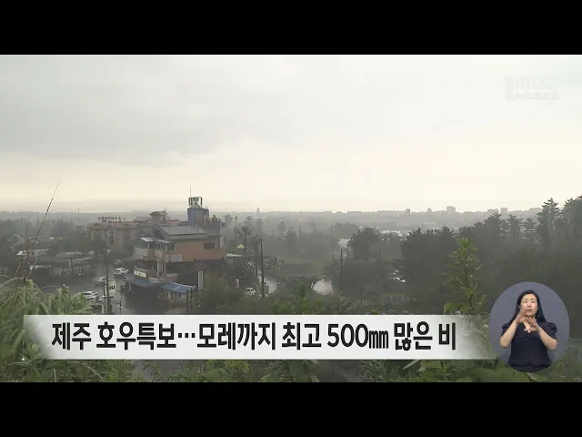 오늘 제주는 산지에 호우경보, 그 밖의 지역에는 호우주의보가 내려진 가운데 곳에 따라 많은 비가 오고 있습니다. 지금까지 내린 비는 한라산 남벽에 55밀리미터, 성판악 48.5밀리미터 등으로 모레까지 최고 200밀리미터, 산지에는 500밀리미터가 넘는 많은 비가 오겠습니다. 특히 오늘 늦은 밤부터 모레 오전 사이에 해...