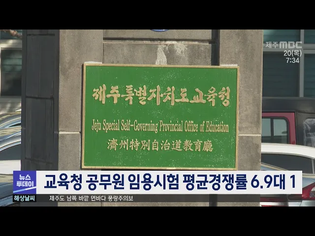 제주도교육청은 올해 지방공무원 임용시험 접수 결과, 77명 모집에 528명이 지원해 평균 경쟁률 6.9대 1을 기록했다고 밝혔습니다. 직렬별로는 교육행정 일반이 13.2대 1로 가장 높고, 전산 6.3대 1, 사서 3.8대 1 순이며, 필기와 면접을 거쳐 최종 합격자는 오는 8월에 발표됩니다.
