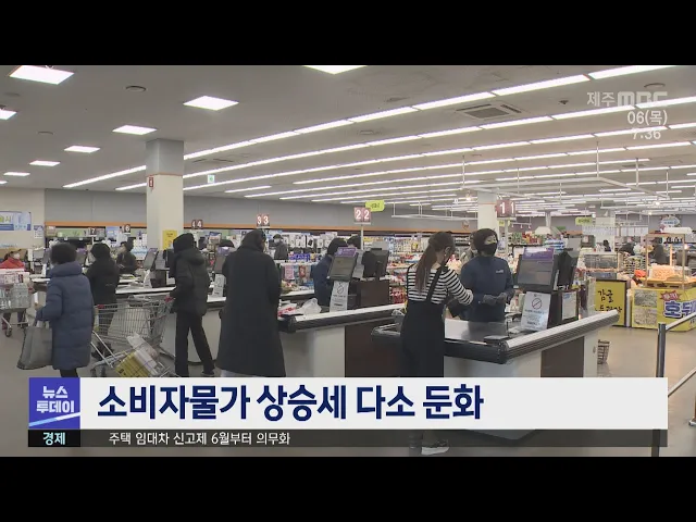제주지역 소비자물가 상승률이 다소 둔화됐습니다. 통계청에 따르면 지난달 제주 소비자물가지수는 110.96으로 1년 전보다 3.9% 올라, 지난 2021년 10월 이후 17개월 만에 3%대에 머물렀습니다. 이는 그동안 크게 올랐던 석유류 가격이 안정세로 돌아섰기 때문인데, 구입빈도와 지출 비중이 높은 생활물가지수는 6.8% 상승...