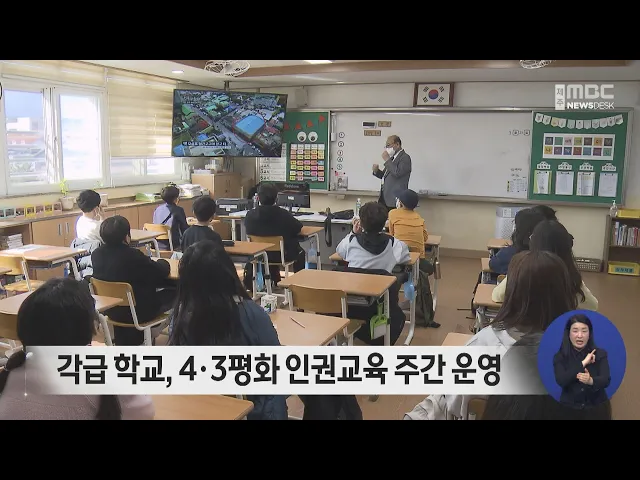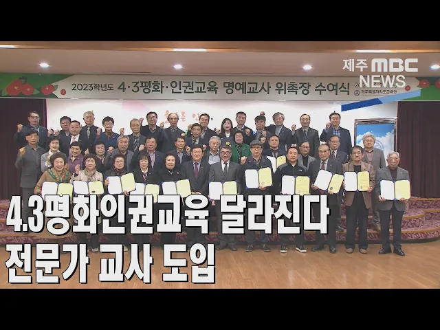 ◀ANC▶ 제75주년 4.3을 앞두고 각급 학교에서는 4.3유족들을 명예교사로 위촉해 4.3의 경험을 학생들에게 들려주는 평화인권교육을 실시합니다. 하지만 유족들의 고령화가 갈수록 심화되면서 올해부터 전문가 과정을 이수한 교사들이 함께 수업을 진행하는 방식이 도입됩니다. 홍수현 기자입니다. ◀END▶ ◀VCR▶ 4.3...