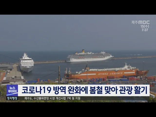 코로나19 방역 조치가 완화되고 봄철을 맞아 관광업계가 활기를 되찾고 있습니다. 제주관광공사 등에 따르면 모레(3/16) 오전, 2만9천 톤급 크루즈선인 '아마데아호'가 제주항에 입항하는 등 3년여 만에 크루즈 여행이 재개됩니다. 또 같은 날, 반려동물 동반 전용 전세기를 이용한 제주 여행 프로그램이 진행되는 등 다양...