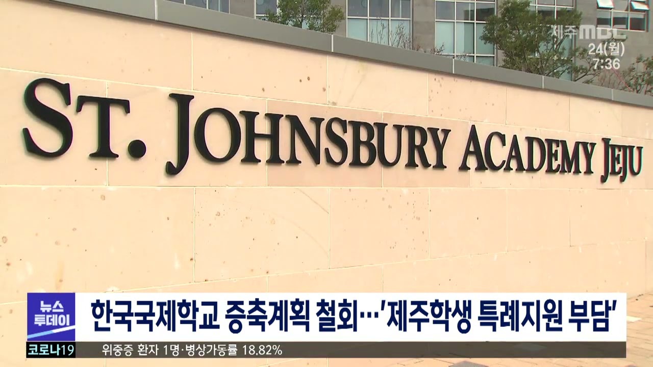 제주영어교육도시 공립 국제학교인 한국국제학교가 초등 부속시설 증축 계획을 제주학생 10% 특례와 경비 지원에 따른 재정 부담을 이유로 철회하겠다는 공문을 제주도교육청에 보냈습니다. 한국국제학교는 예산 65억 원을 들여 초등 교실과 음악, 미술실 등을 증축할 계획이었는데, 제주도의회 교육위원회가 증축안을 처...