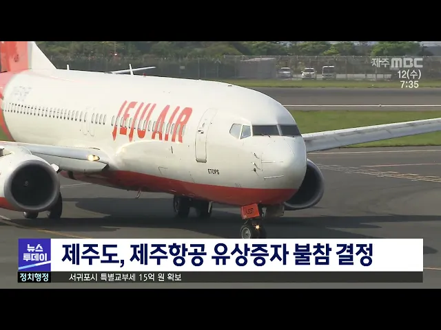 제주도가 올해 제주항공의 유상증자에 참여하지 않기로 했습니다. 제주도는 올해 제주항공이 부여하는 신주 인수권을 매도하고 내년에는 신주 인수권의 40%를 매입하는 공유재산 관리계획 변경안을 제주도의회에 제출했습니다. 이는 유상증자가 8월 말에 발표돼 올해 추경 예산에 반영하지 못했기 때문인데 제주도의 지분...