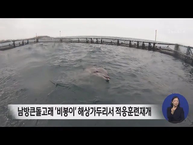 태풍 북상에 대비해 수족관에 다시 옮겨졌던 남방큰돌고래 '비봉이'가 야생 방류 훈련에 재돌입했습니다. 해양수산부는 남방큰돌고래 '비봉이'를 그제 서귀포시 대정읍의 해상가두리로 다시 옮겨 활어 사냥과 잠수 등 야생 적응 훈련을 재개했습니다. 해수부는 '비봉이'가 해상가두리 훈련 기간 중 이전 돌고래보다 7배 이...