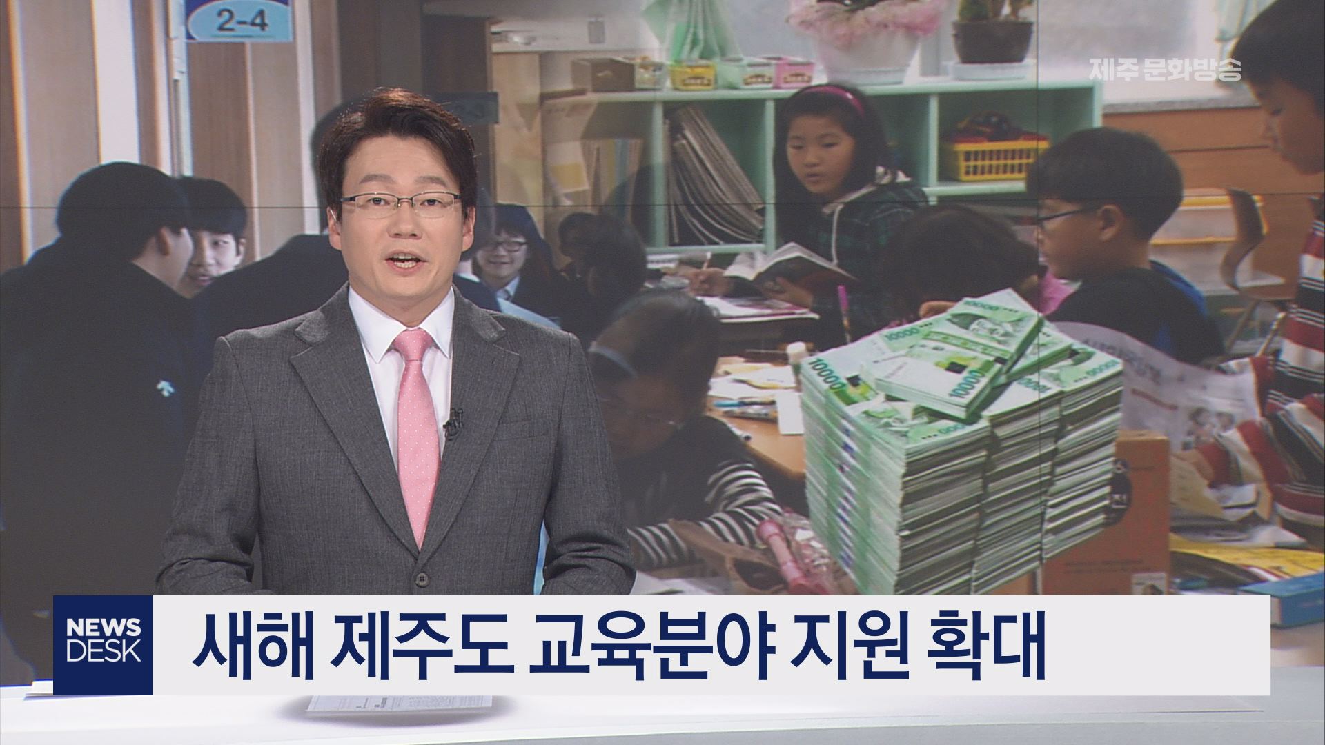 교육분야에 대한 제주도 지원이 확대됩니다. 제주도는 올해 공교육 경쟁력 강화 지원사업에 교육청 예산의 20%에 해당하는 2천424억 원을 투입한다고 밝혔습니다. 분야별로는 지방교육재정 교부금 지원과 지방교육세 전출에 천936억 원과 학생 복지증진 사업 344억 원, 농어촌학생 교통비와 학교 음식쓰레기 자체처리 지원...