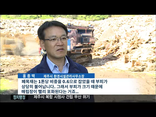 ◀ANC▶ 최근 제주지역 건설 붐과 함께 폐목재 발생량이 급증하면서 처리에 골머리를 앓고 있는데요, 이 폐목재를 연료로 재활용하는 방안이 추진돼 눈길을 끌고 있습니다. 홍수현 기자입니다. ◀END▶ ◀VCR▶ 도내 건설 현장에서 수거된 폐목재가 산더미처럼 쌓여 있습니다. 콘크리트 거푸집으로 사용된 널판지부터 쪼...