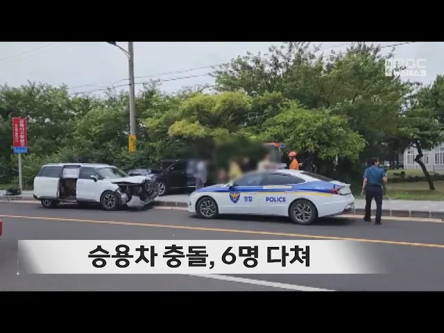 오늘 낮 12시 50분쯤 제주시 조천읍 함덕교차로 인근 도로에서 승용차 2대가 부딪치는 사고가 발생했습니다. 이 사고로 같은 차량에 타고 있던 일가족 5명과 맞은편 차량 운전자인 60대 1명 등 모두 6명이 다쳐 병원에서 치료받고 있습니다. 경찰은 운전자를 상대로 정확한 사고 경위를 조사하고 있습니다.