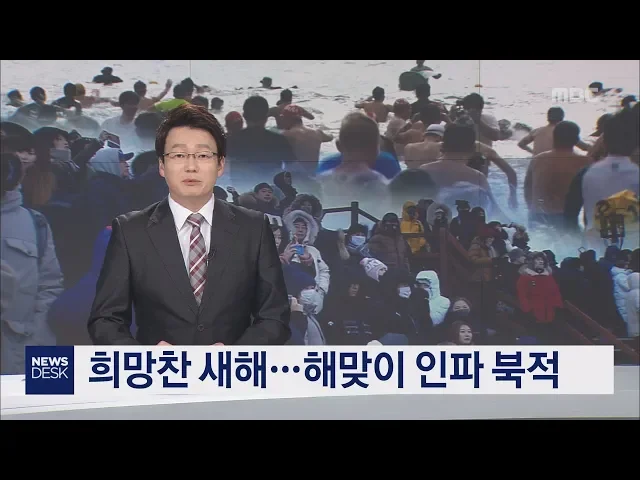◀ANC▶ 시청자 여러분, 새해 복 많이 받으십시요. 2019년 새해 첫 날 뉴스투데이 제주입니다. 황금돼지의 해를 맞아 새해 소망 빌고 계신 분들 많으실텐데요. 성산일출봉을 비롯한 제주도내 해돋이 명소에도 이른 새벽부터 많은 인파로 붐비고 있습니다. 성산일출봉에 나가있는 취재 기자를 연결해보겠습니다. 이소현 기...
