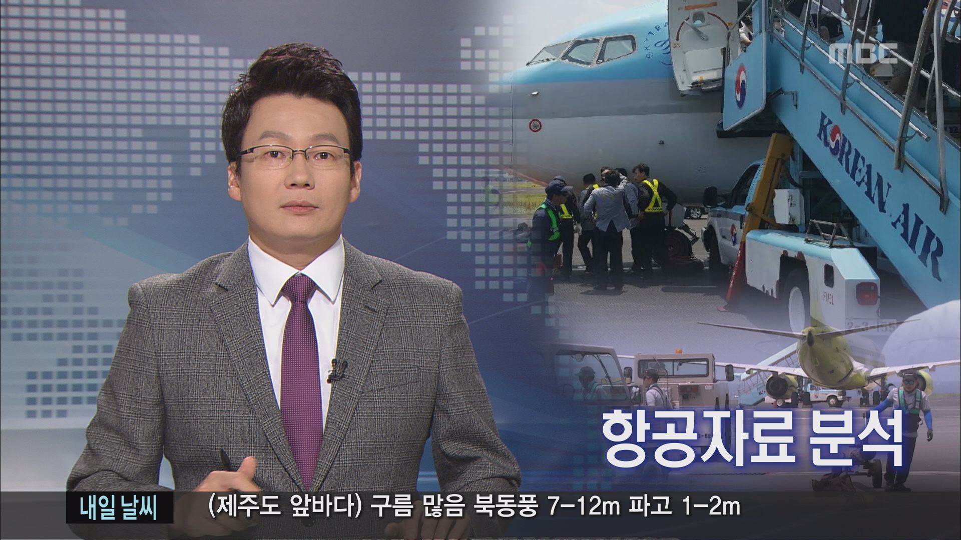 제주공항에서 어제 발생한 대한항공기 타이어 파손 사고와 관련해 국토교통부가 항공자료 분석에 들어갔습니다. 국토교통부 안전운항감독관은 대한항공으로부터 항공자료와 정비점검자료를 넘겨받아 항공기의 착륙 당시 상황과 속도, 타이어의 불량 여부 등을 조사하고 있습니다. 국토부는 타이어 제조사 관계자에 대해서도...