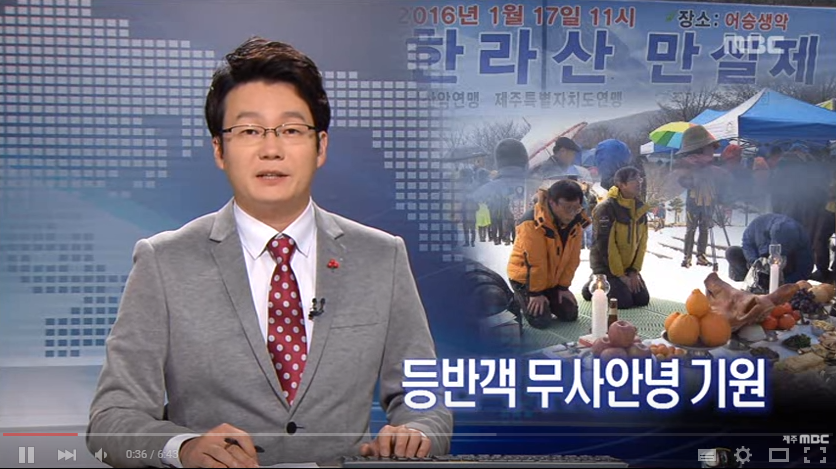 ◀ANC▶ 한라산에서 발생하는 산악사고가 한해 400건이 넘고 있는데요. 오늘(어제) 비 날씨속에 만설제가 열려 등반객들의 무사 안녕과 새해 소망을 기원했습니다. 이소현 기자가 보도합니다. ◀END▶ ◀VCR▶ 흰 눈의 제단 대신 하얀 천 위에 차려진 제례상. 돼지머리와 과일, 떡 등 제물이 가지런히 놓였습니다. 맑은...