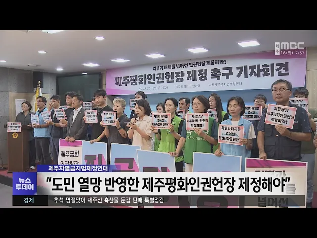 시민사회단체가 제주평화인권헌장 제정을 촉구하고 나섰습니다. 제주차별금지법제정연대는 도의회 도민카페에서 기자회견을 열고 제주평화인권헌장안 제정은 도민 화합과 평화로운 제주를 위한 오영훈 도정의 핵심 공약이라고 밝혔습니다. 이들은 헌정안 제정이 일부 극우와 보수 기독교 세력의 방해로 여전히 난항을 겪고 ...
