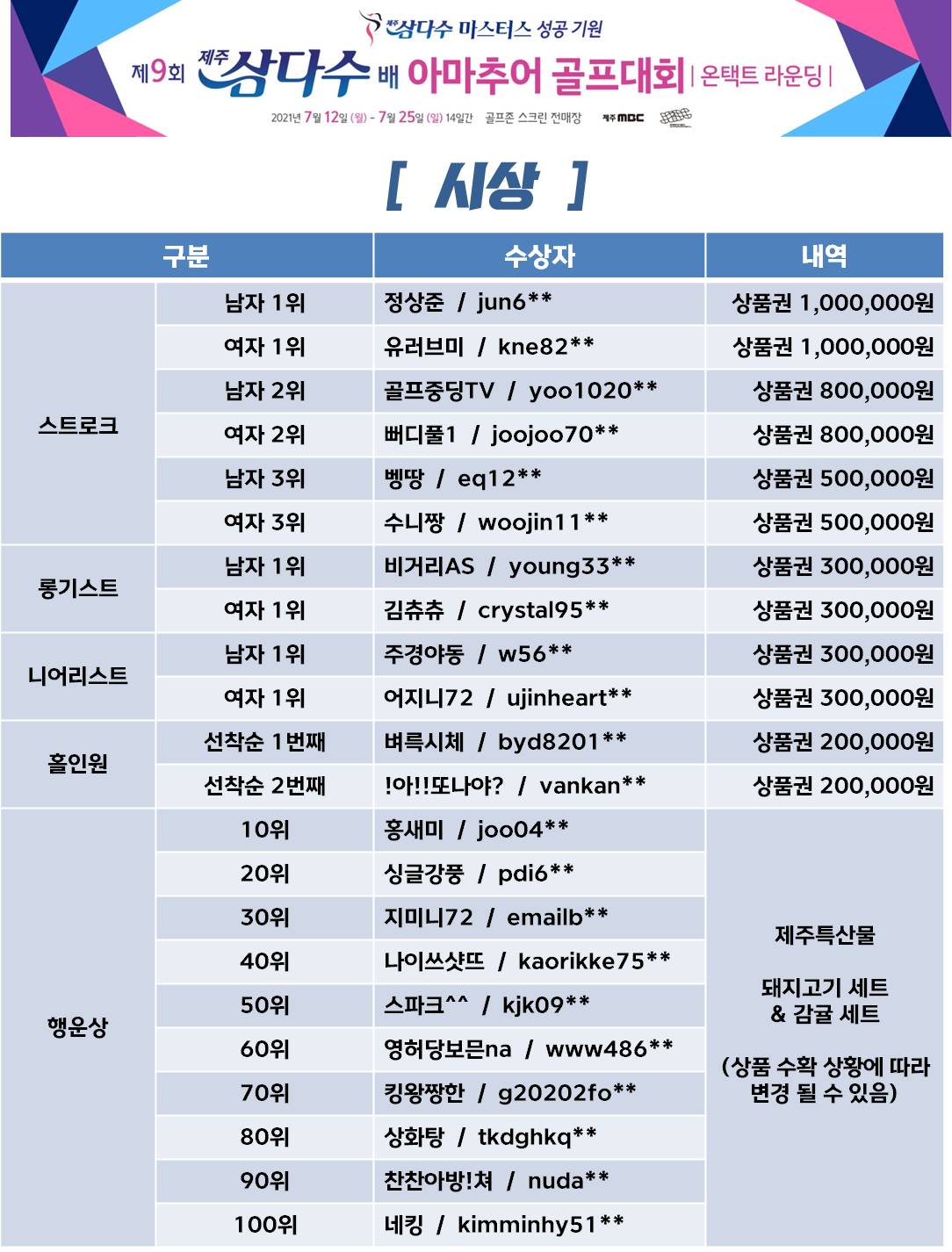 제9회 제주 삼다수배 아마추어 골프대회 온택트 라운딩 시상표